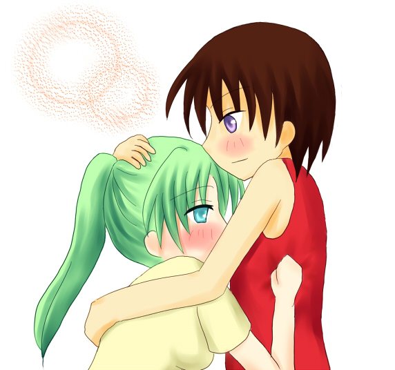 私胸で抱きしめるの好きなんですが圭魅はほとんど身長差がないようなのでどういう風に描けばいいか悩んだあげく下の方を切ってごまかしましたw魅音が屈まないといけなくなるんですよね。圭一早く大きくなって!w